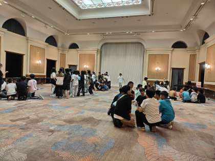 ジェスチャーしりとりの結果発表も終わり、次は猛獣狩りを楽しみ、最後は進化ジャンケンに白熱した夜のレクリエーション。