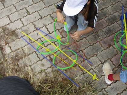 生活科の学習で、これまで育ててきたあさがおのつるを使って、リース作りをしました。