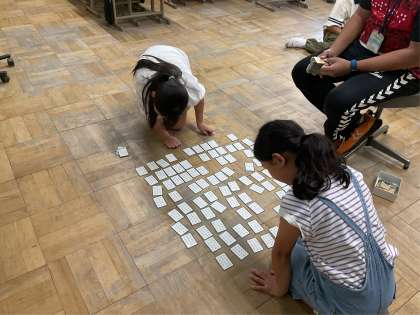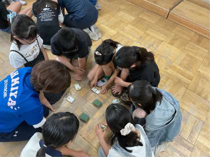 百人一首を使って遊びました。和歌を覚えて対戦するグループと、坊主めくりをするグループに分かれて遊びました。和気あいあいとした雰囲気で、先生も一緒にみんなで楽しく遊んでいました。