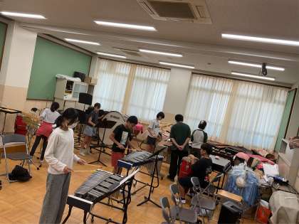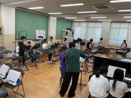 前半は楽器ごとにパート練習をし,後半はみんなで合奏をしました。「キセキ」という曲のサビの部分をゆっくりとしたテンポで合わせていました。回を重ねるごとに上手になっています。