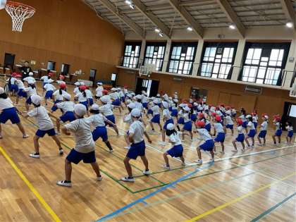 止めるところ、回るところなどがピシッとそろうように、先生のカウントに合わせて練習をしていました。全員の振りがそろうと、とてもかっこよく見えます。