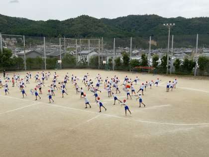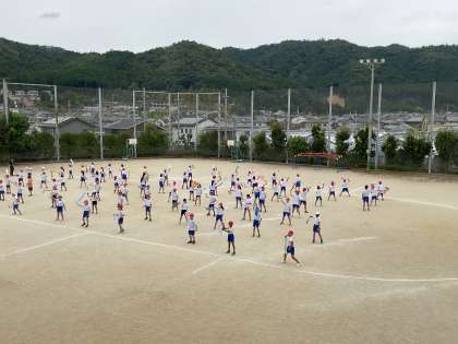 スポーツフェスティバルにむけて、運動場での練習が始まりました。自分の立ち位置やリレーの動きを確認しながら、自分たちで「こうしたい」という思いを持ちながら取り組んでいます。