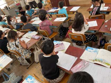 5場面の子どもたちの様子を思い浮かべて、発表しました。会話文の読み方の工夫も考えました。「おうい」ってどんなふうに言っているのかな?呼びかけるように、音読していました。ワークシートにも一生懸命考えを書いていました。
