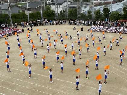 クラスで団結して綱を引きました。迫力満点の綱引きでした。表現では、集団行動、リズムダンス、フラッグなど盛りだくさんでした。さすが6年生!最後にとてもかっこいい姿を見せてくれました。