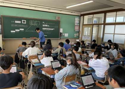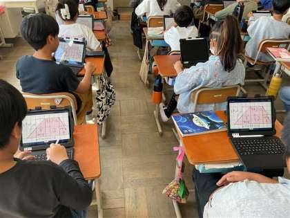 台形の面積の求め方を考えました。これまでに学習した面積の公式をつかって求めることができるでしょうか?ギガ端末を使って考えを共有し、台形の面積を求める公式を考えることができました。