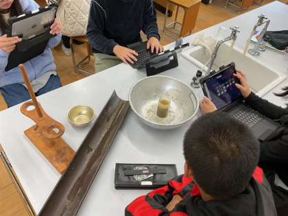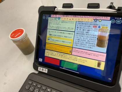「れき、砂、どろが積み重なった地層はどのようしてできるのか」という問いを確かめる実験をしました。予想、実験計画、結果、考察などはロイロノートでまとめています。