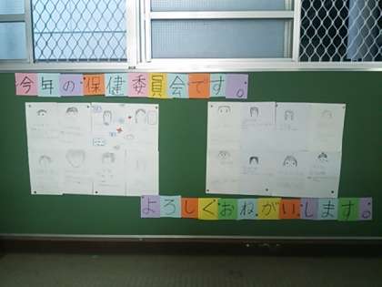 保健室前の掲示版に,今年度の保健委員会のメンバーの名前とそれぞれの抱負を掲示しました。
