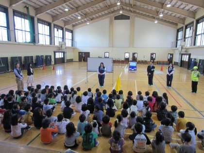横断歩道のわたり方や,路側帯,歩道の歩き方を教えてもらい,家から学校まで安全に歩く練習をしました。
