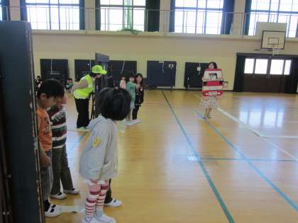 体育館にいくと,交差点や横断歩道,車まで作ってあります!