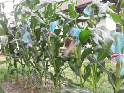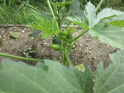みんなで育てた野菜や朝顔が大きくなりました。今年はじめてオクラを作りました。しっかりと大きくなっています。
