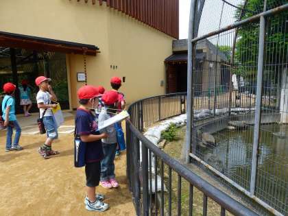 1年生が2年生とペアになってクイズラリーをして園内を回りました。