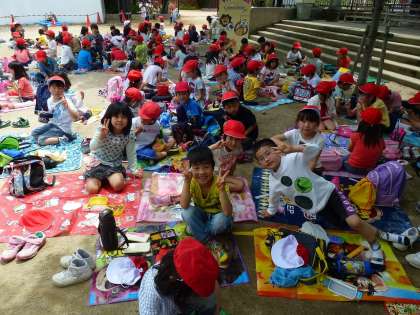 楽しみにしていたお弁当もおいしくいただきました。心配していたお天気も程よい暑さで,活動しやすかったようです。