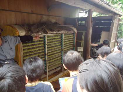 金曜日には,地域の方に米作りについてお話を聞き,もみまきを見学,体験させていただきました。