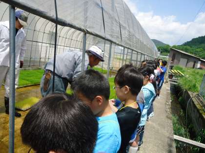 5年生では総合的な学習の時間に,米作りを行います。