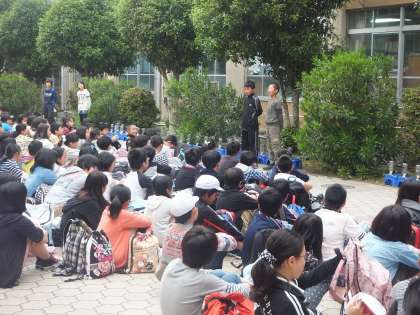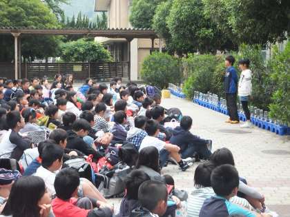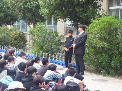 今日から1泊2日で,淡路島,四国,岡山方面への修学旅行に出かけます。午前7時30分から中庭で出発式を行いました。