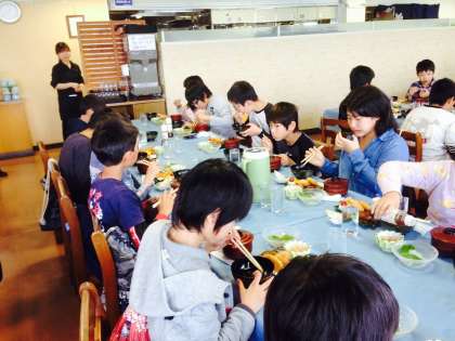 昼食の様子です。次は,観潮船に乗って渦潮の見学をします。