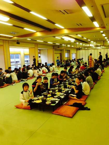 夕食の様子です。この後,ゆうべの集いがあり,22時に就寝になります。