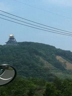 高速を降り、伊勢市を走っています。伊勢市のテーマパーク・安土桃山文化村の近くを通りました。安土城を再現したお城が車内から見えました。