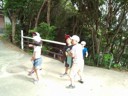 ウォークラリーです。地図を見ながら問題ポイントを探し、班で話し合って正解を考えます。
