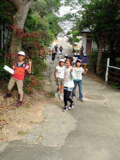 班で協力してクイズを解いていきます!みさきの家の自然を観察しながら,所内を探検しています。