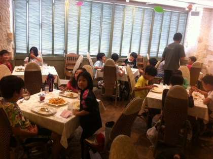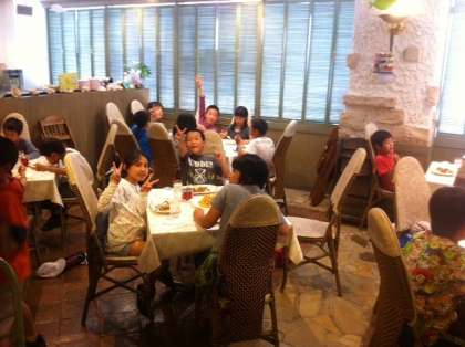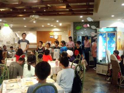 今回の宿泊学習最後の食事です。水族館内のレストランでカレーライスとポテトを食べました。チキンカレー・ビーフカレー・ポークカレーのバイキングです。