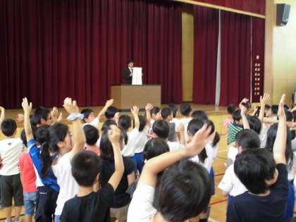 今日は6月の町会がありました。校長先生から環境についてのお話とあいさつについてのお話がありました。一昨日みさきの家からもどった4年生も疲れがとれたようで,元気に登校していました。