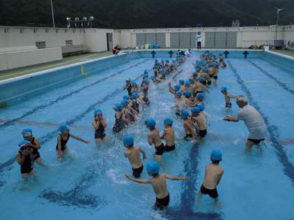 水の掛け合いっこもしました。明後日からは3年生以上の水泳学習も始まります。