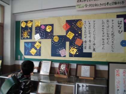 今日は,昨日と一転して雨が降っています。いつになったら梅雨明けするのでしょうか。玄関の掲示物は,一足早く夏の飾りになっています。