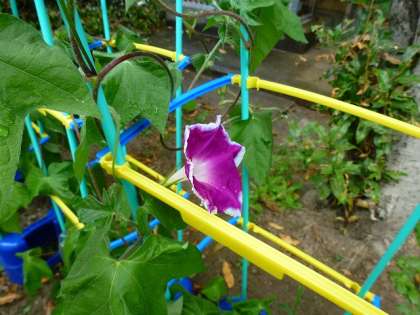 一年生が育てているアサガオが咲き始めました。来週,再来週と次々に咲いてくると思います。