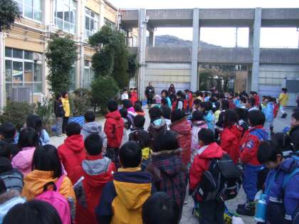 気持ちのいい天気に恵まれ,129名全員,元気に出発しました。出発式も生き生きとしていて,これから始まる活動が楽しみです。