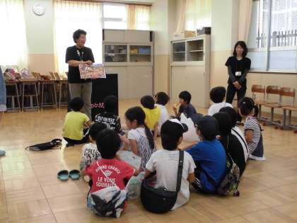 北館の生活科室では,ゆめのひきだしのみなさんが,本の読み聞かせをしてくださいました。