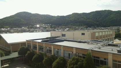 今日は午前中,一時雨が降りましたが,その後晴れてきました。さて,今日は柊野小学校の周りの様子をお伝えします。写真は今日の午後,南館4階の学習室から撮った写真です。学校の北側を写しました。とても広い本校の校区ですが,北側は田畑も多く,新しい家もたくさん建ってきています。