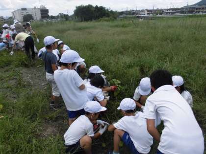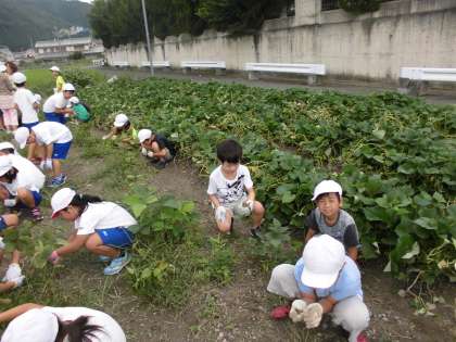 4月,地域の方々に手伝ってもらい植えた大豆の種がりっぱに育ち,おいしそうな枝豆になったので,皆で収穫をしました。
