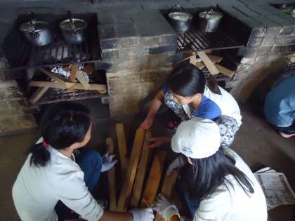 火の準備も,一日目に比べると大変上手にできるようになりました。空気の通り道のことも考えながら,薪を組んでいました。