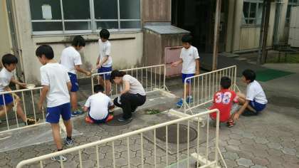 6校時に委員会活動がありました。夏休み明けはじめての活動です。美化委員会では,みんなで協力して車止めのペンキ塗りをしました。どの車止めもとてもきれいに仕上がりました。