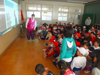 チェギチャギなどの遊びも実際にやってみました。最後の質問コーナーでは,子どもたちからいろいろな質問がでました。子どもたちは韓国の学校の様子や生活の様子にとても興味をもったようでした。