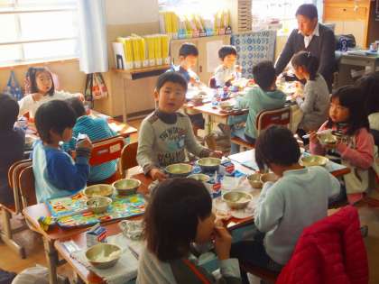 1年生の給食の様子です。後期に入り,配膳も上手になってきました。