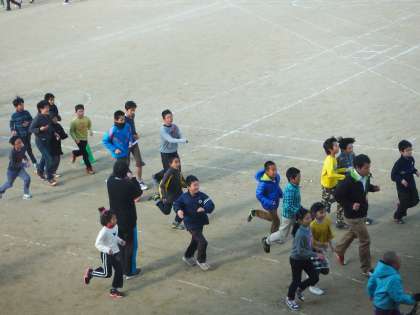 先週から始まった中間マラソンは,今日が最終日です。写真は高学年の様子です。