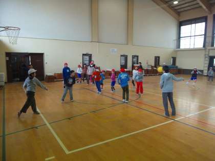 なかよし遊びの最終日です。今日の中間休みは,青組がたてわりで遊びました。