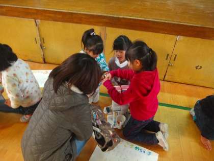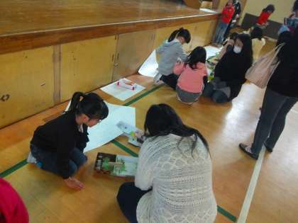 今日の1時間目と2時間目に体育館で「あそび大会」をしました。保護者のみなさんも来てくださいました。
