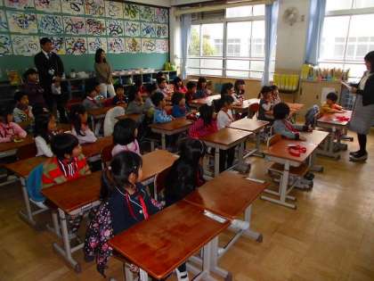 年長児たちは,一年生の3教室に分かれて半日入学の体験をしました。