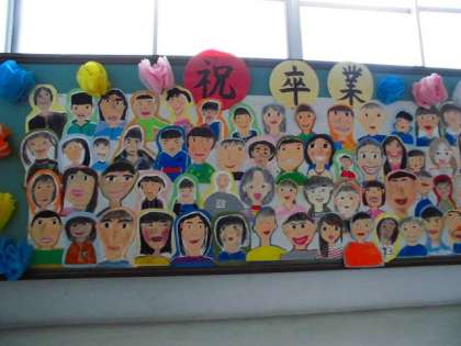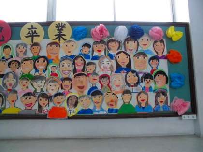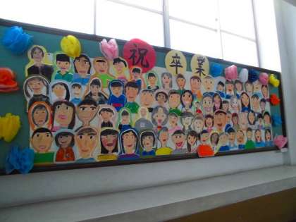 4年生の掲示板です。みんなで卒業のお祝い掲示をつくりました。