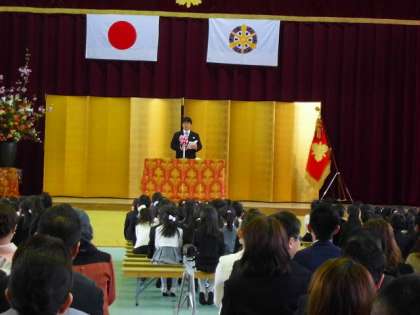 学校長式辞,来賓祝辞のあと,2年生からお迎えの言葉と歌がありました。