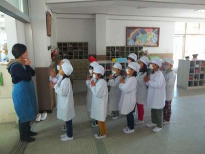 給食が始まって2日目,今日はごはん給食でした。