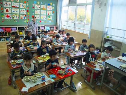 給食2日目,1年生の給食の様子です。