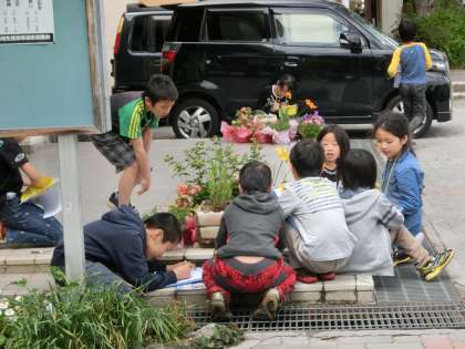 3年生はじめての理科の学習「しぜんのかんさつをしよう」で,虫めがねをつかって動植物の観察をしました。虫めがねを使って花の花粉をよくみたり,定規で花のくきの長さを測るなど,子どもたちは興味津々でした。