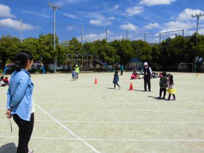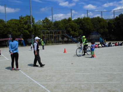 運動場に置かれた自動車や自転車も使って,学習しました。今日学んだことをこれからの登下校にいかしてほしいと思います。