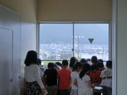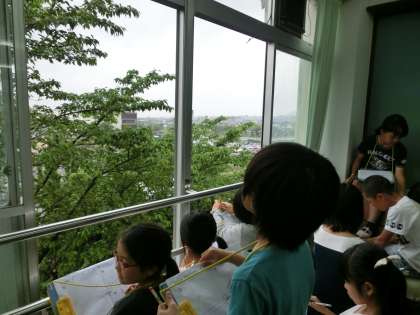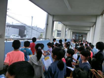 社会科「わたしたちのまち」で柊野のまちの東西南北はどうなっているのかを見にいきました。わたりろう下や3階の倉庫,プールにいってまちの様子を見ました。木曜日には,まちたんけんに出かけます。
