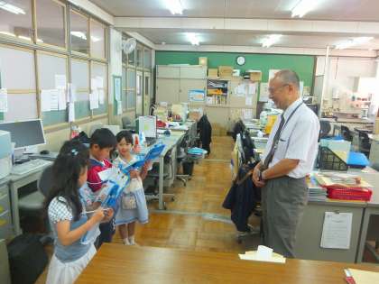 今日の1,2校時に1年生が学校探検をしました。2年生に教えてもらったことを生かしてグループで学校内を探検しました。
