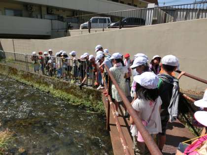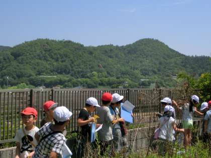 社会科「わたしたちのまち」でまちたんけんに行きました。明神川や柊野のまちが見える小高い所に行きました。「柊野には山や川があってすてきだな。」「たくさん家があって人がたくさんすんでいるんだね。」など,たくさんの発見をしていました。